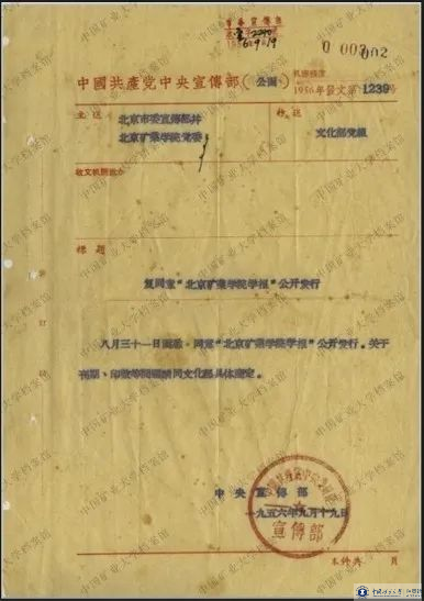 1956年9月19日,中共中央宣传部批准《北京矿业学院学报》自1957年起公开发行,发行册数为每期1000-1500册。