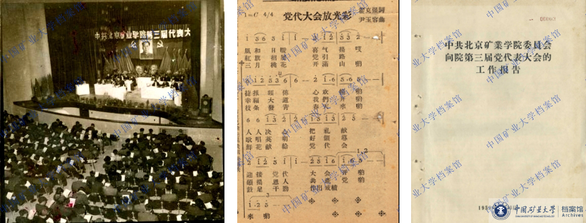 1959年3月13日至20日,在五道口教工俱乐部,中共北京矿业学院第三次党员代表大会隆重召开。出席大会的正式代表共239名,教育部、煤炭工业部及北京市高校党委派代表参加会议。